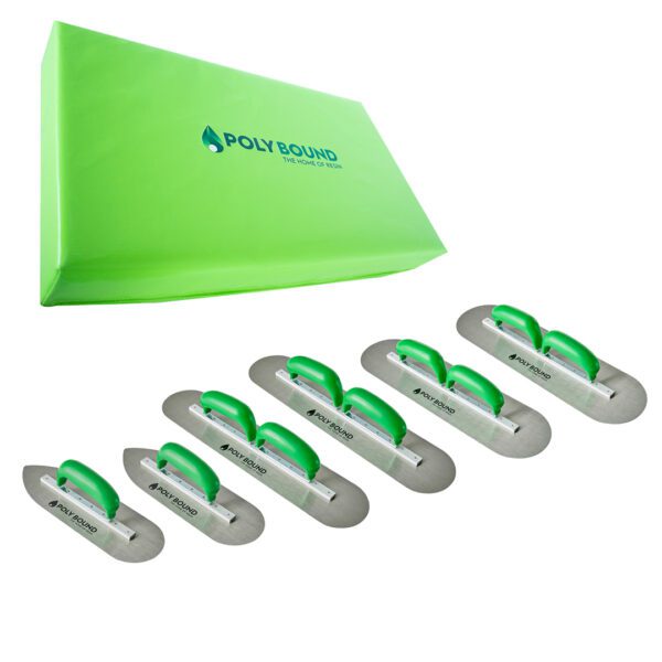 - x2 Thicc B*stard Trowel (450x127mm): For maximum coverage and efficiency on larger areas. These robust trowels are engineered for rapid application, allowing you to cover more ground quickly while maintaining Polybound’s signature smooth finish. They are the ultimate tools for tackling extensive projects with speed and precision, ideal for a team or complex installations.