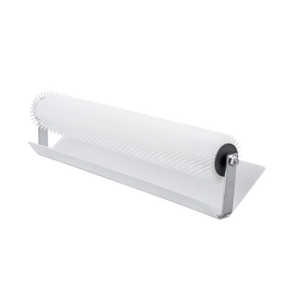 The 18″ Spiked Roller with Splash Guard is designed to make self-leveling cement applications easier and cleaner. With 14mm polyester spikes and a chrome-finished metal construction this roller offers both durability and long-lasting performance. The built-in splash guard helps keep your workspace free from cement and paint splashes, while the regularly spaced spikes ensure easy cleaning after use.